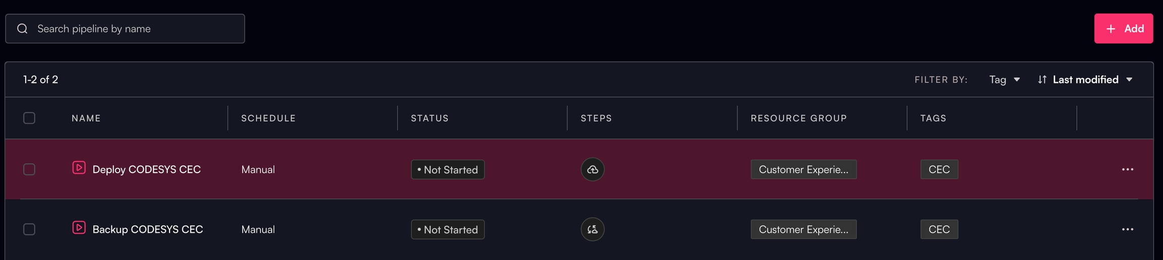 Pipelines are automated workflows that allow you to execute a series of operations on your devices and infrastructure. Pipelines can be triggered manually or scheduled to run automatically, enabling you to automate routine tasks like backups, deployments, and device maintenance.