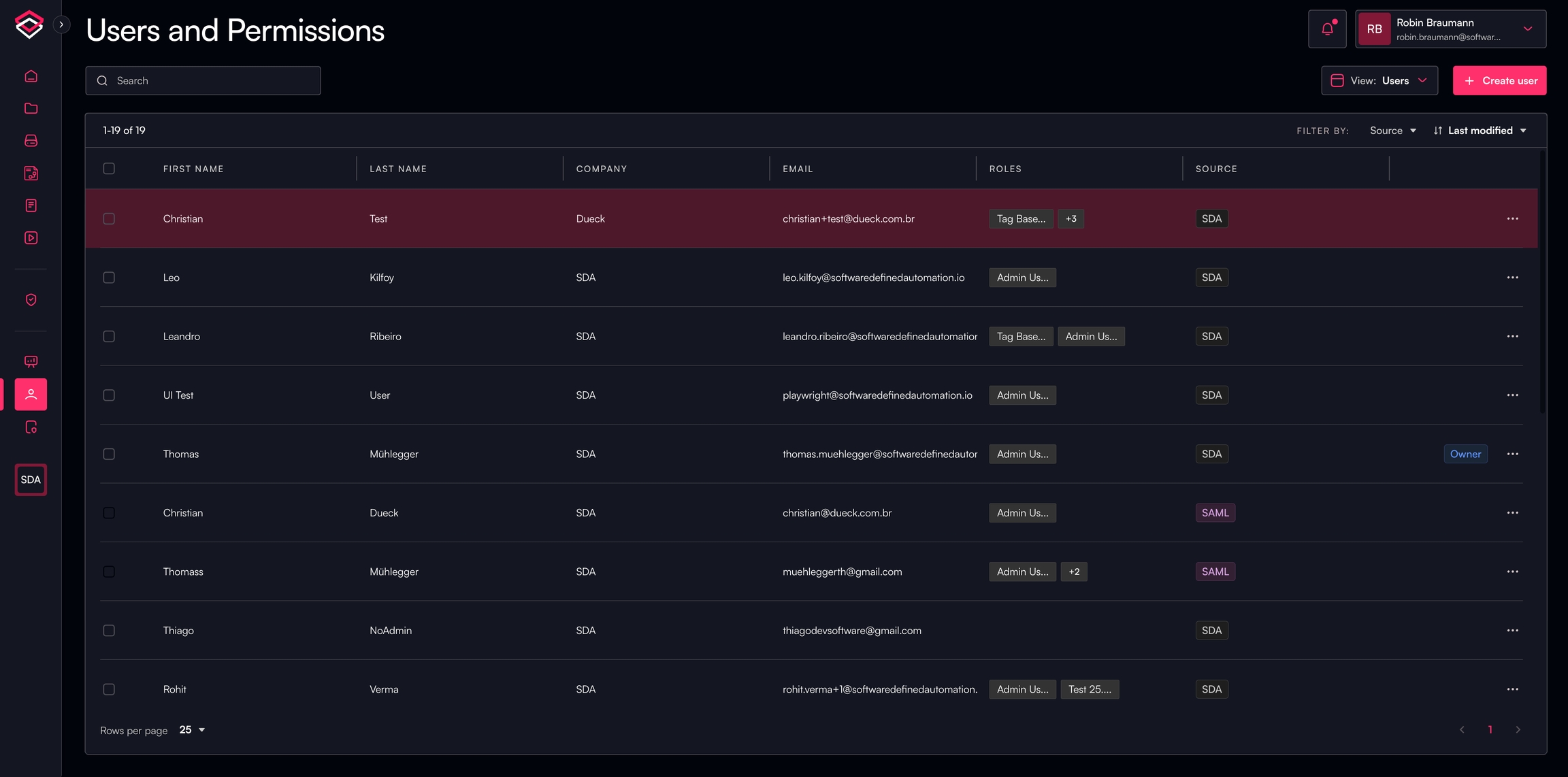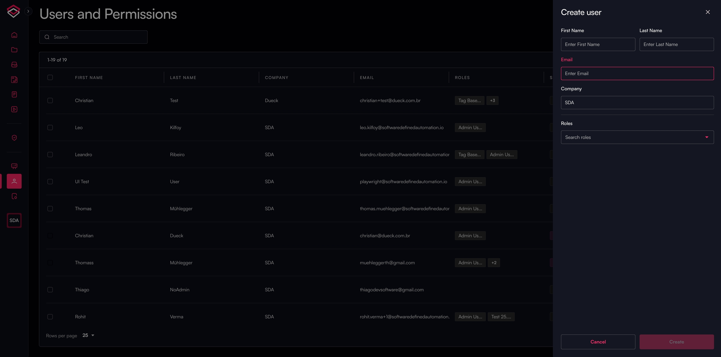 This section guides you through creating and managing users directly within the SDA platform. It covers how to add new users, assign roles, control permissions, and maintain secure access to your tenant using SDA’s built-in identity management. These steps are ideal for customers who manage users locally within SDA without relying on external authentication or SSO systems.